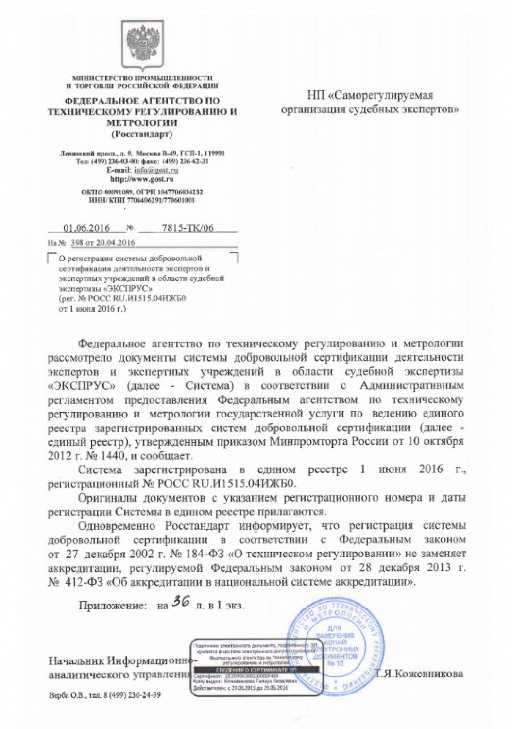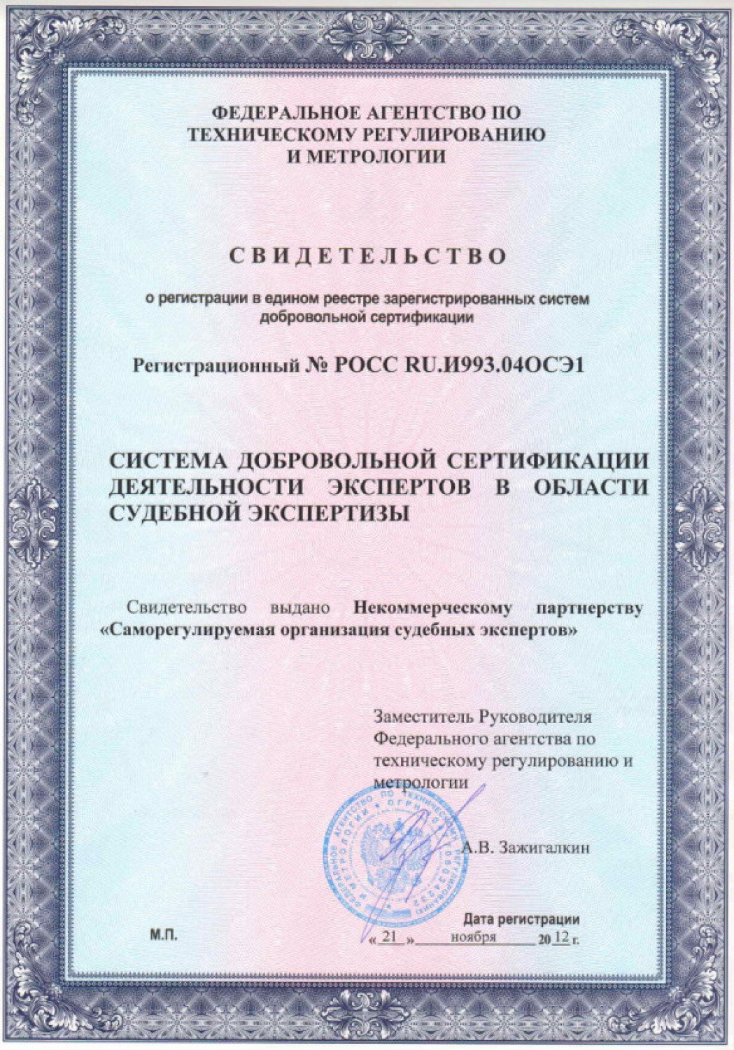 Свидетельство о государственной регистрации НП СРО судебных экспертов
