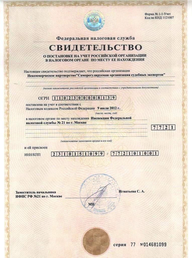 Свидетельство о постановке на учет