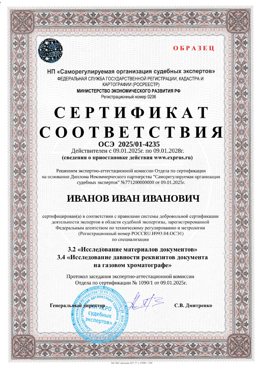 - Удостоверение судебного эксперта - члена СРО судебных экспертов (срок действия - 10 лет)