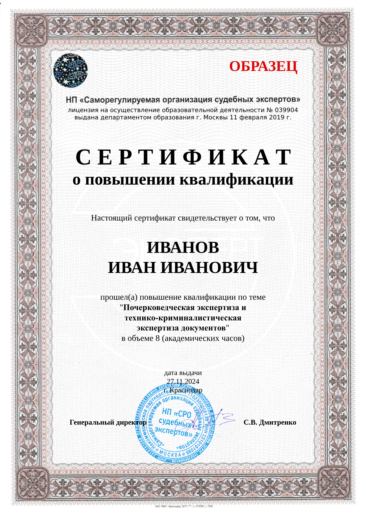 СРО имеет Лицензию на осуществление образовательной деятельности №039904 от 11.02.2019 г.
